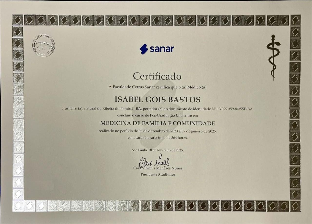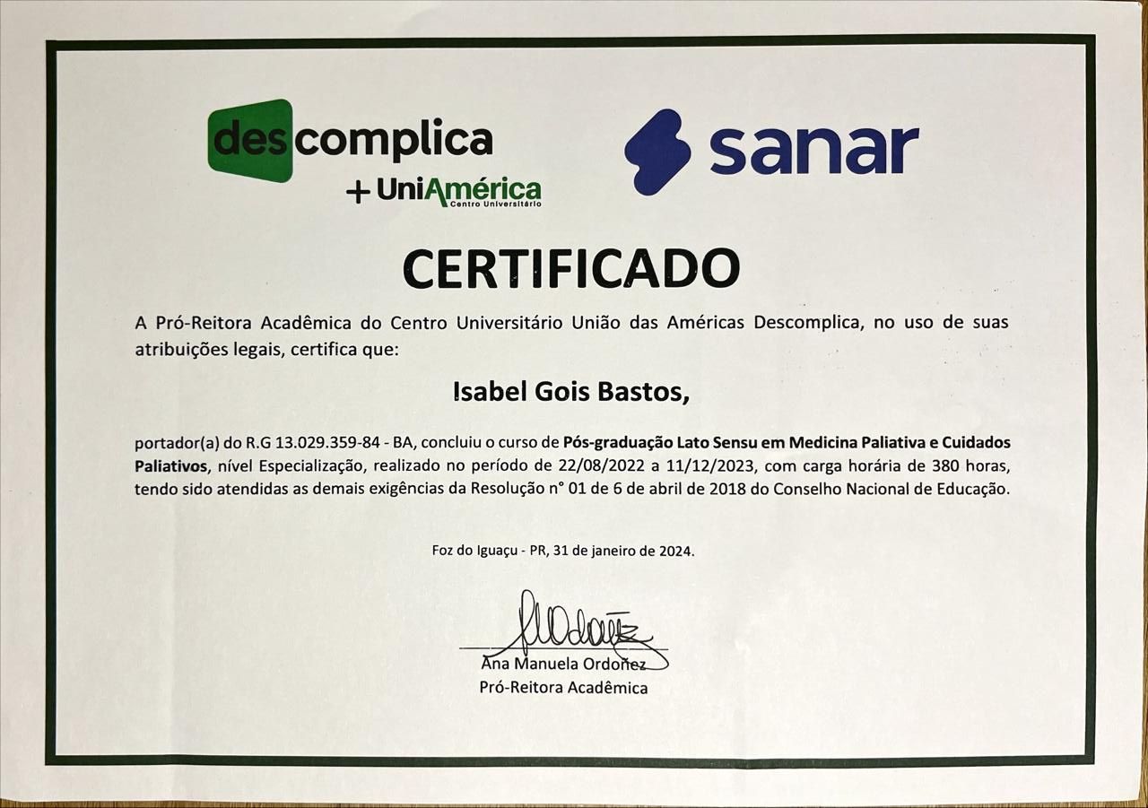 Sou médica formada pela Universidade Estadual de Santa Cruz (UESC), com pós-graduação em Terapia de Dor e Cuidados Paliativos pela PUC Minas, em Medicina Paliativa e Medicina de Família e Comunidade pela Cetrus Sanar. Também finalizei uma especialização na área de Medicina Endocanabinoide. Encontrei minha vocação nos cuidados paliativos — uma medicina que respeita o tempo, a história e os valores de cada pessoa. Acredito em um cuidado que vai além do corpo, que escuta com presença e atua com base em ciência, afeto e autonomia. Atuo com pessoas que vivem com doenças crônicas, avançadas ou em situação de vulnerabilidade, oferecendo atendimentos online e domiciliares, com foco em conforto, qualidade de vida e apoio à família. Se você busca um cuidado sensível, respeitoso e profundamente humano, estou aqui para caminhar junto.